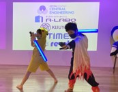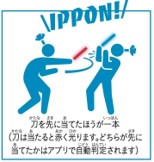 次世代のデジタルチャンバラのようなスポーツで、センサー内蔵のLED刀は、Bluetoothで専用アプリと連動し、どちらが先に当てたのかを正確に機械判定します。スマートフォン一台あれば、正確な判定が可能です。