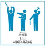 1試合は60秒間で、先に2本取った方が勝利となります。